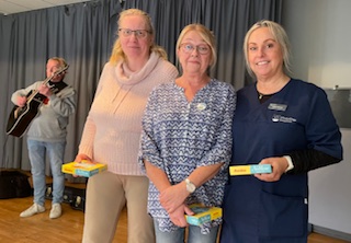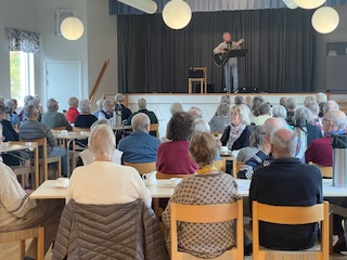 Bilder från vår traditionsenliga fikabjudning på Äppelvägens särskilda boende 2025. Vi bjöd på kaffe, tårta och underhållning av Lasse Trofast.